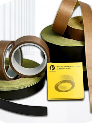 江蘇永盛新材玻纖布,采用工藝技術(shù)涂層PTFE樹(shù)脂,再單面涂覆有機(jī)壓敏硅膠而成。